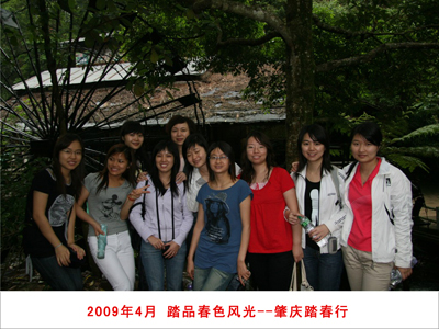 4月的天,草长莺飞,丝绦拂堤;4月的天,千树琼花,碧波涟漪;4月的天,兰馨蕙草,润物如酥;4月的天,春色满园,落红如雨。4月的天,一伸手便可触摸到她湿润的发梢,感受到她温暖的呼吸,“几处早莺争暖树,谁家新燕啄春泥”便是4月天美好的画卷。 很感谢公司组织的肇庆两日游,很开心在4月的天里,让我们能有幸去感觉肇庆的秀美山水。肇庆山水给人一种鉴赏盆景的总体美感。奇山、 秀水、幽洞构筑出岭南大地最美的秀美风景。 根据计划早上7:00到达公司出发,对于即将的美好旅程,人总是会表现的很兴奋。到达肇庆的德庆的时候,已经接近12点了。午饭后的第一站是”鼎湖山”,心里美美的想着鼎湖山的美貌,却不知此时的天空已经下起了春雨。碰上了这爱闹小脾气的春雨,心里是又欢喜又担忧,欢喜是因为春天的细雨润物大地,勃勃朝气,它给予了生命的活力,担忧的是行程中的”鼎湖山”遇到麻烦了。